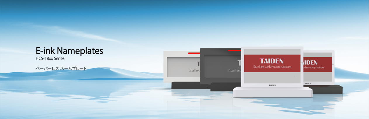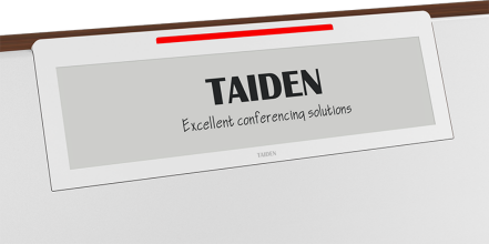 TAIDENE-ink電子ネームプレートは、テーブルトップまたはフラッシュマウント、片面または両面表示、黒/白・白/赤のビジュアルオプションなど、さまざまなタイプがあります。TAIDEN会議システムとシームレスに統合されたE-inkネームプレートはサインイン時に参加者の名前が表示でき会議運営が円滑にでき、参加者のインタラクティブな体験を向上させるだけでなく、ペーパーレスで環境に優しく再利用可能なデザインはTAIDENのグリーン哲学を具現化しています。 |